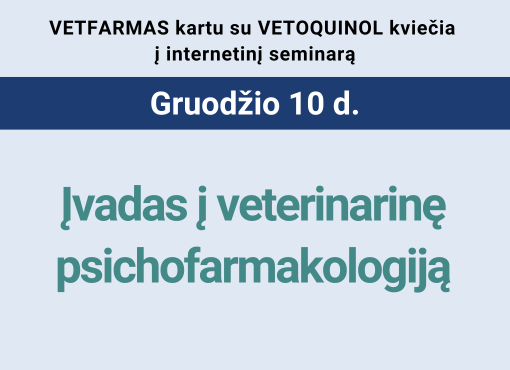 Veterinarijos gydytojus kviečiame dalyvauti nemokamame internetiniame seminare: Tema: Įvadas į veterinarinę psichofarmakologiją Lektorė: dr. Katrin Jahn Seminaras įvyks 2025 m. gruodžio 10 d., trečiadienį, 19 val. internetu. Vet. gydytojams suteikiamos […]
