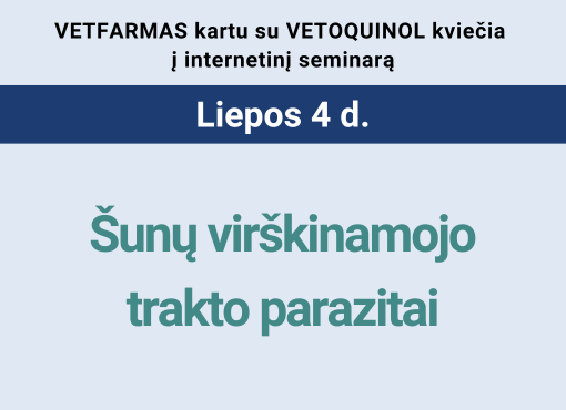 VETFARMAS kartu su VETOQUINOL kviečia veterinarijos gydytojus dalyvauti nemokamame internetiniame seminare: ŠUNŲ VIRŠKINAMOJO TRAKTO PARAZITAI. Seminaras įvyks 2024 m. liepos 4 d., 18.30-20.30 internetu. Lektorius: Andrei D. Mihalca Pagrindinis dėmesys bus […]
